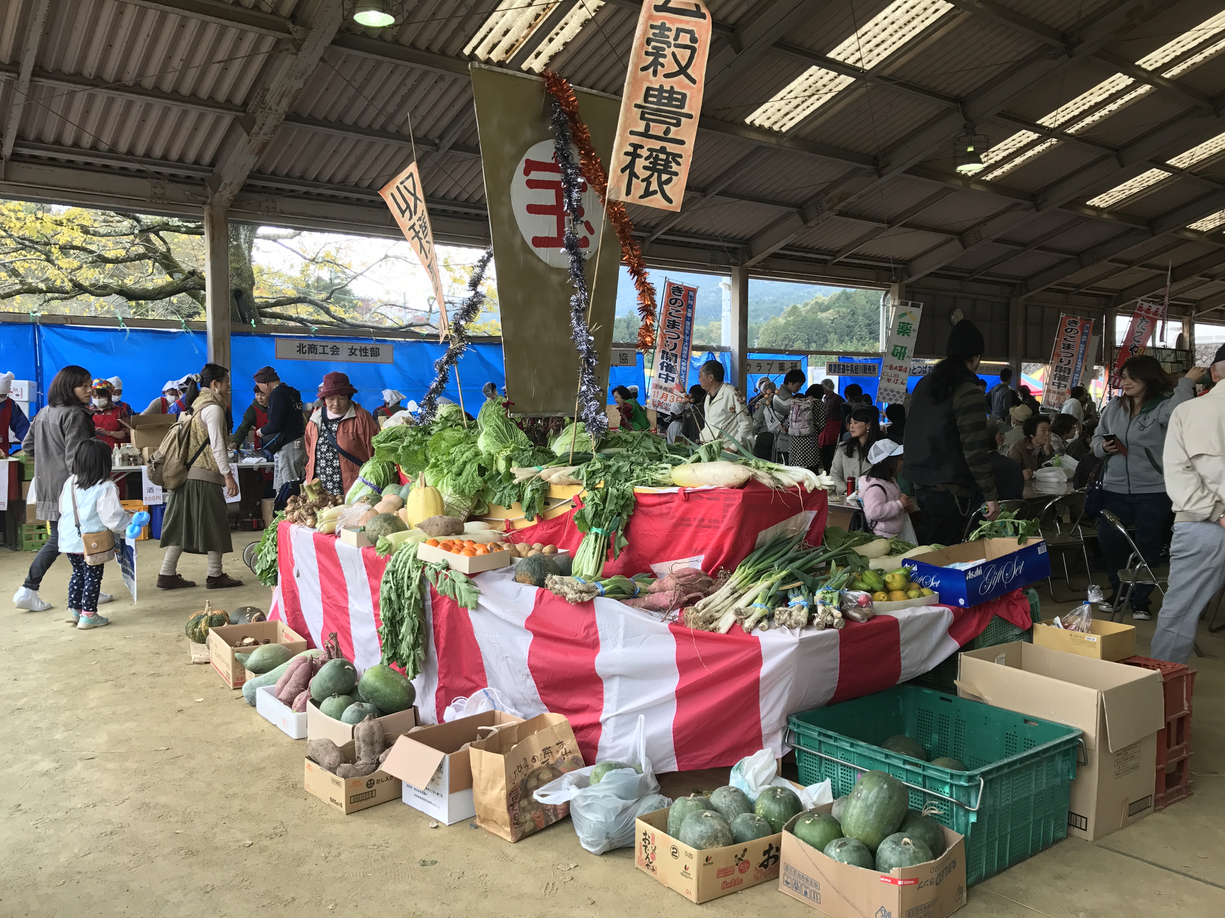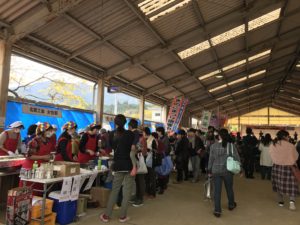 そして屋内外には農産物即売所や露店が多数出店。特に、地元婦人会による手作り五平餅や甘酒等のブースは大人気です。