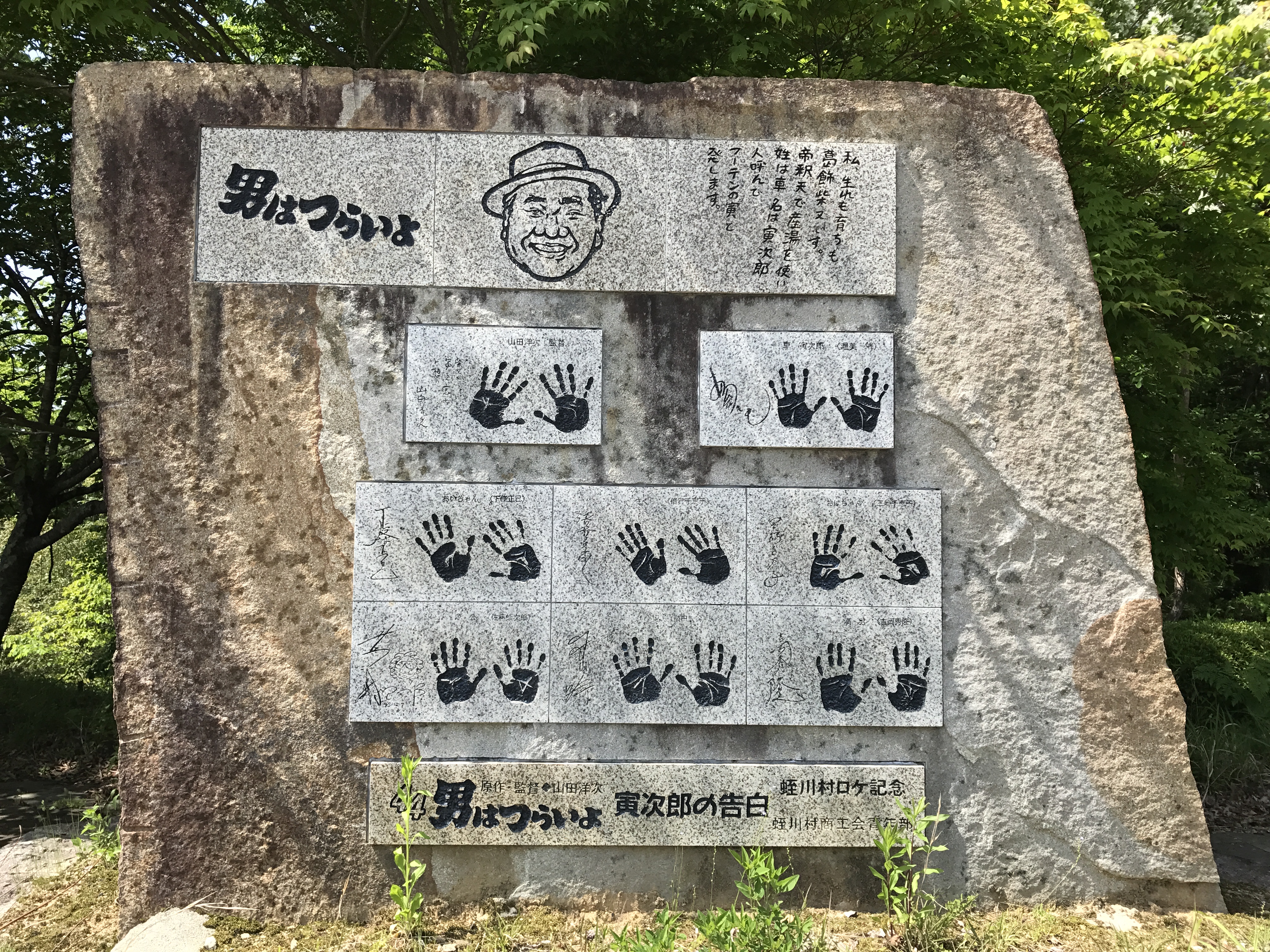 通称『オブジェロード』と呼ばれる蛭川の基幹道路には、過去の作品とともに『寅さん』でお馴染みの男はつらいよ記念碑が展示されています。
