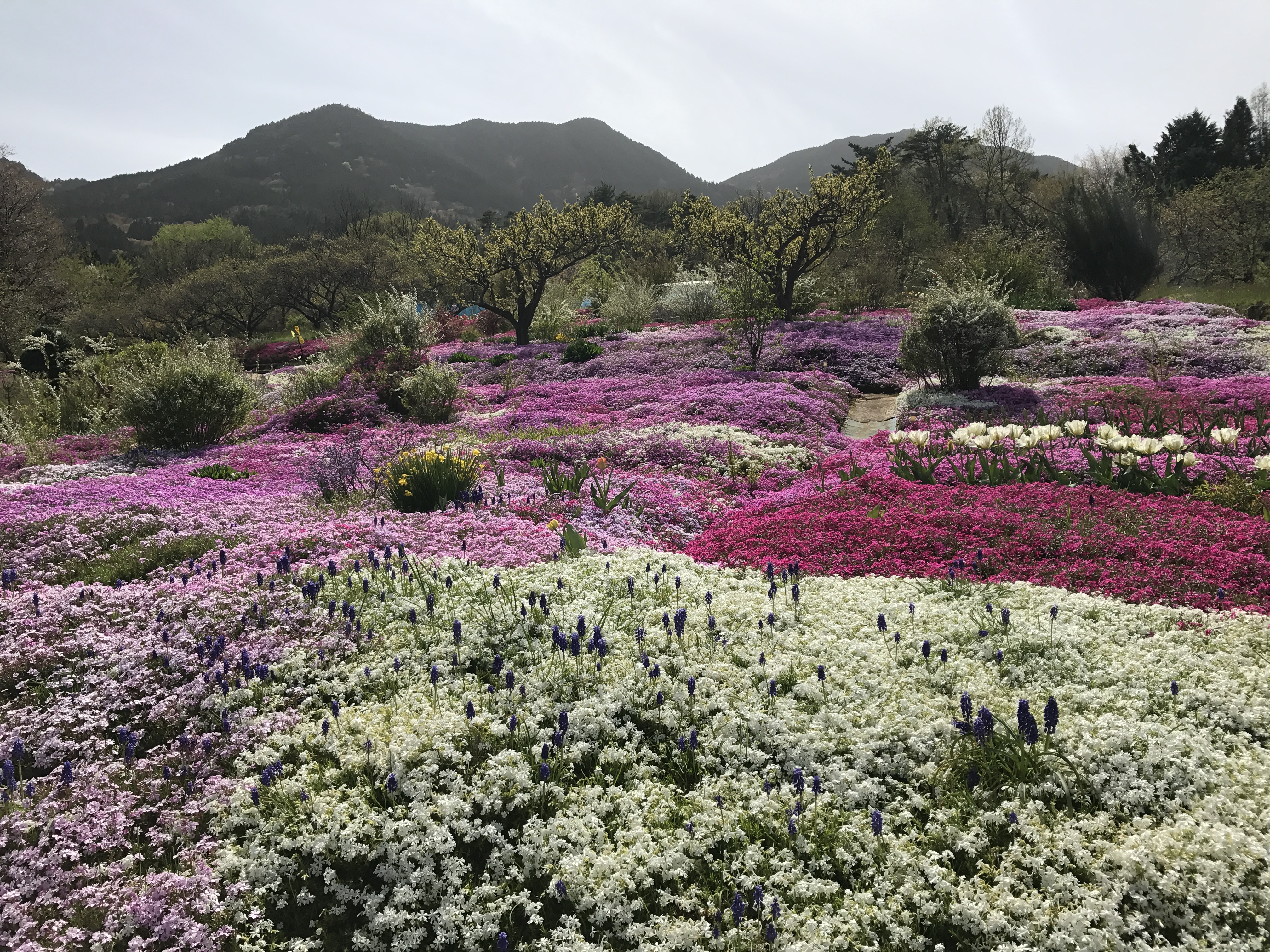 芝桜が満開を迎える頃、チューリップや雪柳、水仙、スズランなど色とりどりの花の共演が観られます。