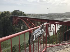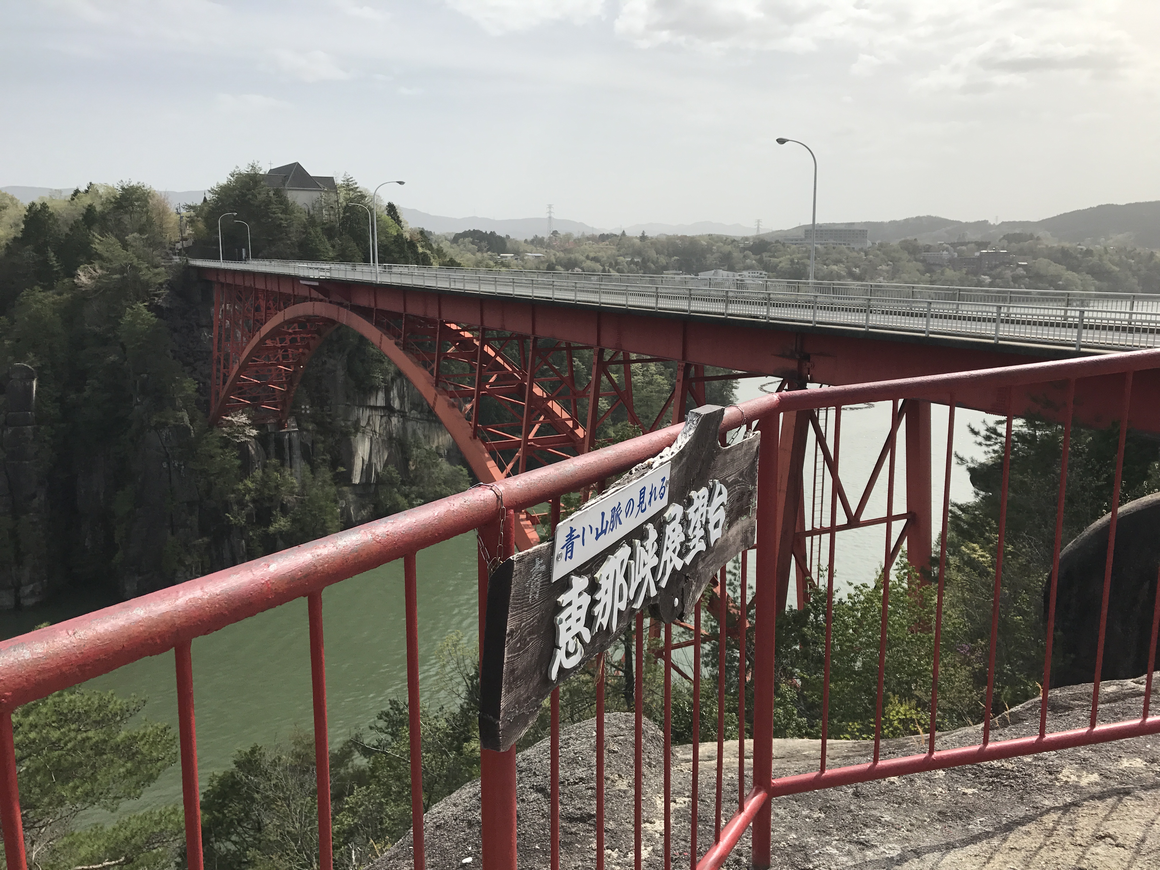 恵那峡に架かる赤いアーチ橋で、中津川市と恵那市を結ぶ主要路。