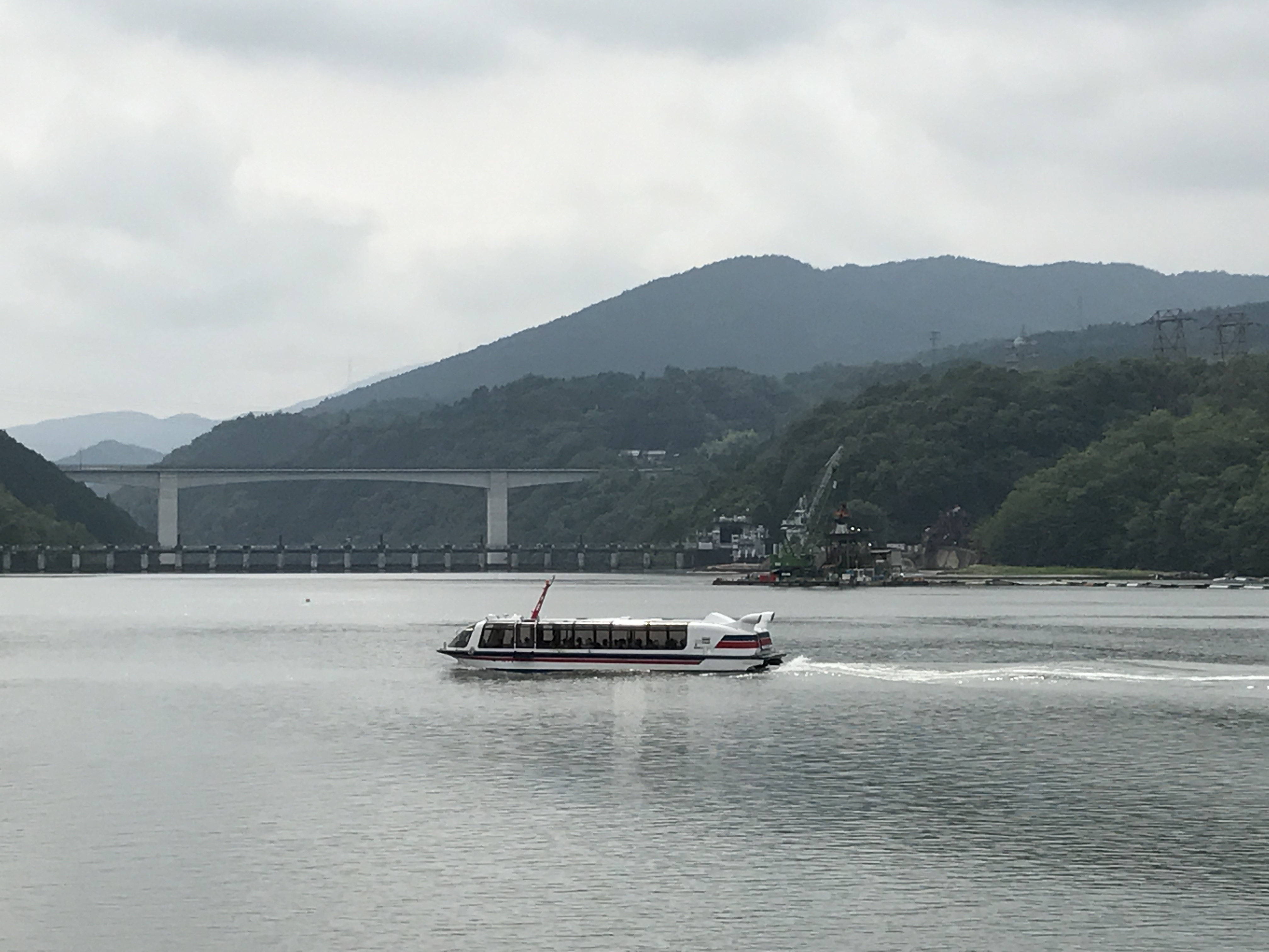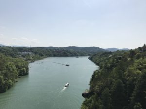 タイミングが良ければ恵那峡大橋の下を通過する遊覧船も観られます。